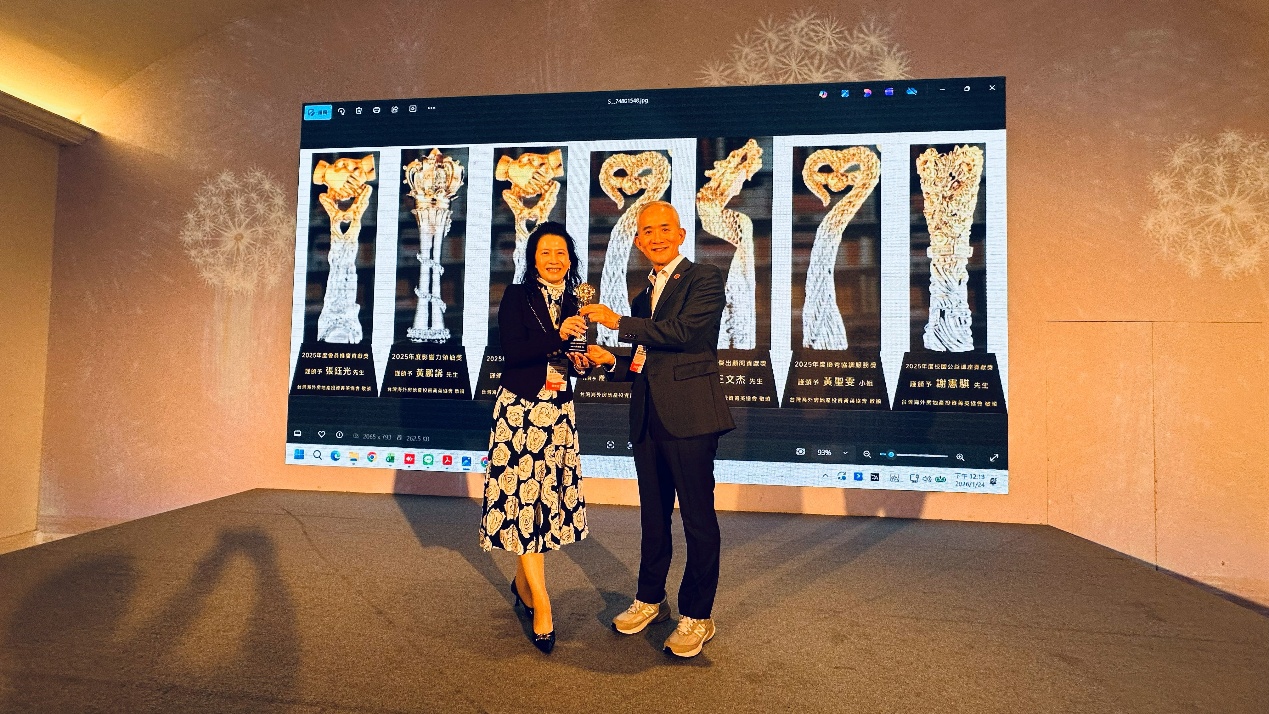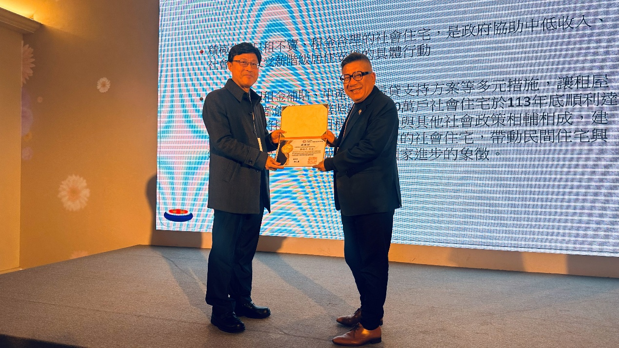 ▲台灣海外不動產投資菁英協會、左為頒獎人劉佩真、右為得獎人黃鵬䛥。(圖/業者提供)